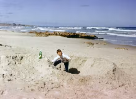 Here are my holes from the mid-late 1980’s … actually, they’re not meant to be holes, the adults just didn’t get it. What I was trying to do was to create a barrier of sand so big that I could sit on the beach and watch the waves crash around me. It never worked very well (duh!) but I did build some rather large barriers in a vain attempt to stop the ocean. Wasted youth :p