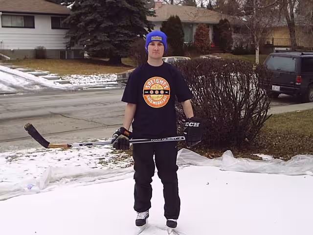 The photo below is of me standing on our rink with my Possum Bourne beanie and Speights T-shirt that my mum sent me. Of course the deep fryer was right in front of me so I couldn’t play hockey that day, but it made for a nice photo 🙂