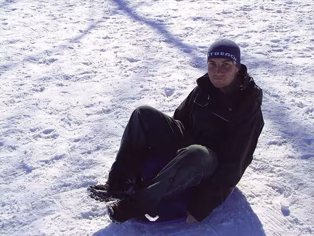 My roommate (flatmate in Kiwi speak) and I went tobogganing. Of course those crazy Canadian kids decided it would be a good idea to build a nice ramp exactly where the natural flow of the hill goes so you end up going backwards at full speed over a ridiculously steep jump! We had a scary fast purple flying saucer style sled and a suicidal magic carpet to risk our lives and limbs on. We had lots of fun though, albeit we were the oldest kids on the hill 😛