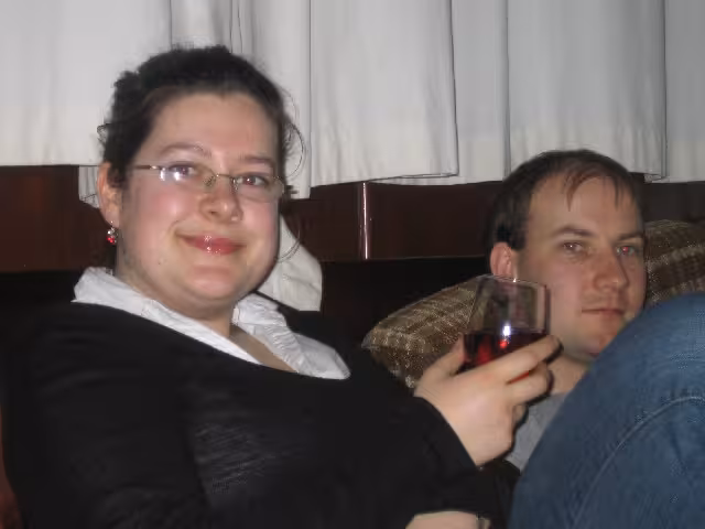 Natasha came round to visit. She let me wear her lip pucker-upper 🙂 And Dars took this photo of us.