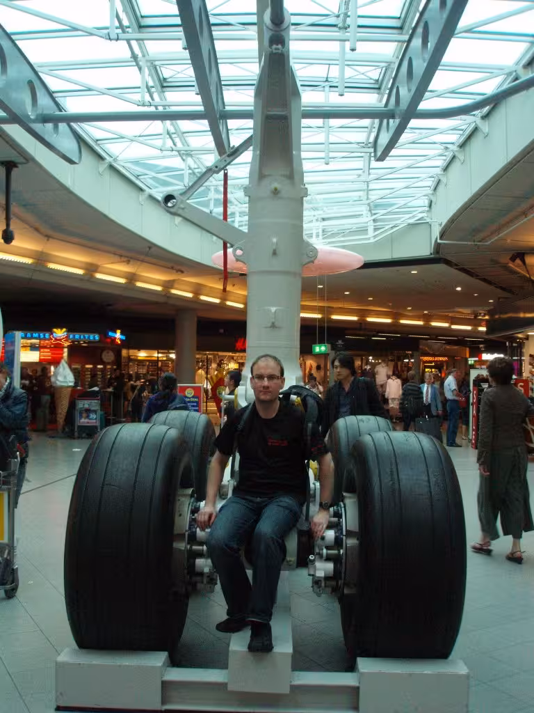 Flying on the side of a Boeing 747 at full pelt can be quite windy, I recommend taking some goggles along.My plans of becoming a sub-mariner were squashed as soon as I entered this thing. It is the most seriously cramped place IAnd to really put paid to my sub-mariner plans, these torpedo bays are only meters from the bedroom area.A Cosmonaut suit.Vikas decided to go first-class instead of wing-class on the Boeing 747.Boeing 747This was actually taken at the Schiphol airport in Amsterdam, but it seemed like an appropriate place to put it.