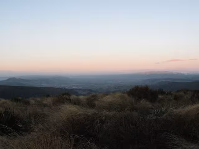 After feeling a rather large earth quake at 4:38am, I decided to bust a move up to Swampy Summit, about 9 km from my home in Dunedin. I’ve had a theory for a while now that some of the small ponds up there would freeze in the winter months. We didn’t have any major frosts this winter so I didn’t bother inspecting, but last night there was at least a chill in the air so I figured I’d go check it out to at least confirm if there was any ice whatsoever and if so, how much there was. There was absolutely no sign of frosts anywhere in the suburbs, even up on the hills, so signs were looking highly unpromising for any ice. After dodging a few trees which had presumably been knocked over during the quake, I made my way to the bottom of the access road to Swampy Summit. Unfortunately it is not possible to drive all the way there, so I had to walk up the hill. The walk should have been 4 km in and 4 km out, but I stupidly took a few wrong turns and it ended up being about 13 kms instead! If you make the trip yourself, ensure you take plenty of water as although it’s not a steep climb, you will gain about 650 m in altitude, so it can be a little tiring.