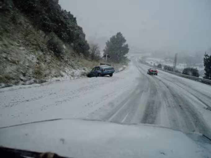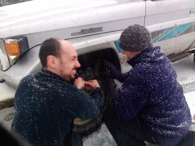 On our way back to Dunedin we got caught in a fairly bad snow storm. Lots of cars fallen off the side of the road, a bus full of tourists careering backwards down the Kilmog hill and many silly drivers still attempting to make their way back to Dunedin grossly unprepared. Thankfully Ed’s Landcruiser was well up to the task and after Ed and Dave kindly put the chains on the truck in horrid conditions (whilst I took stood around taking pictures) we had no problems making our way back home.