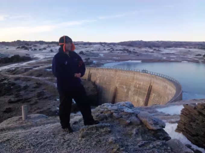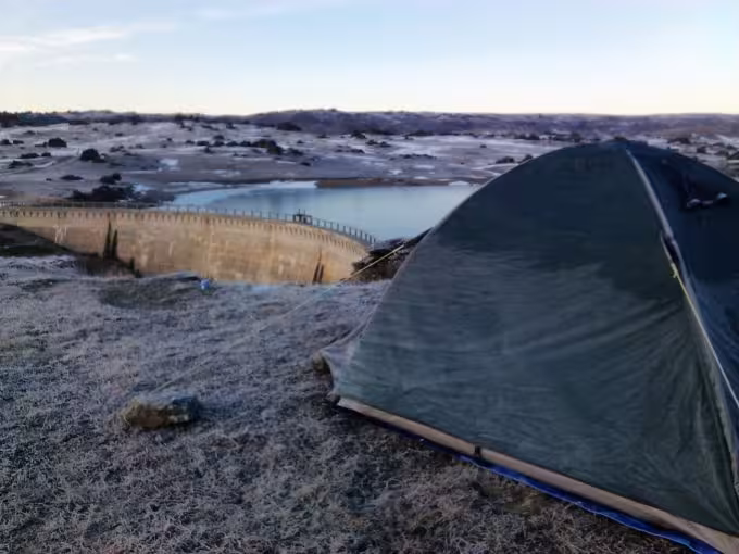 We awoke to a beautifully calm, albeit chill day and an excellent view from the campsite, out across the Poolburn dam.