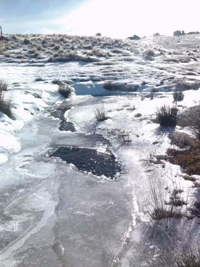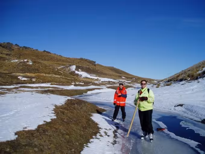 Ryan Hellyer (me) and Dave Patchett standing on a frozen stream. We managed to skate downhill in that stream for a few hundred meters. Thanks to Ed Waite for the photo.