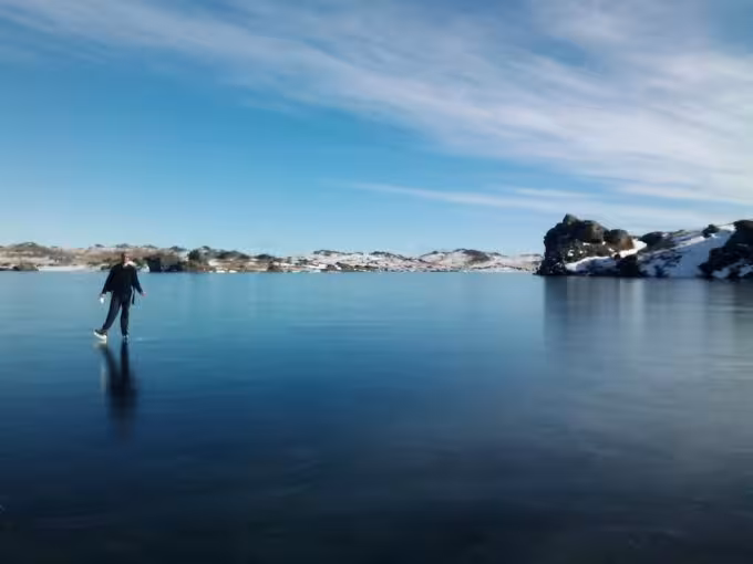 We were greeted at the lake shore with an excellent expanse of solid hard ice to skate on. We did a full circumnavigation around the lake, including many sections we had never skated on before due to the water level having risen considerably this year.
