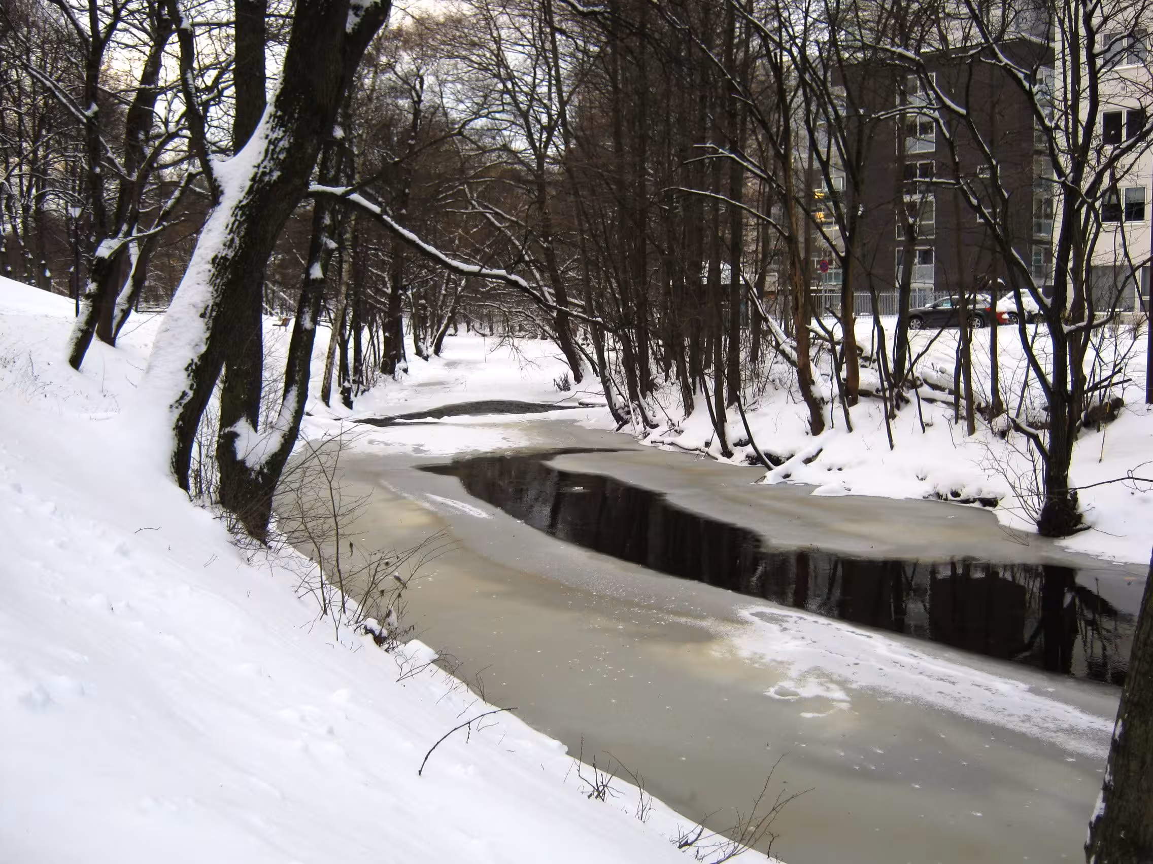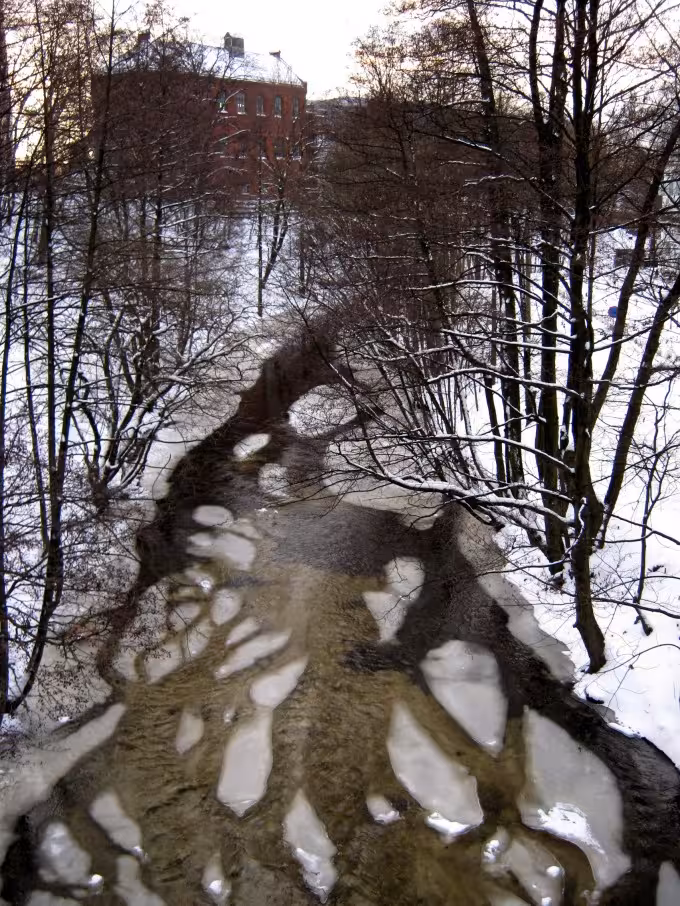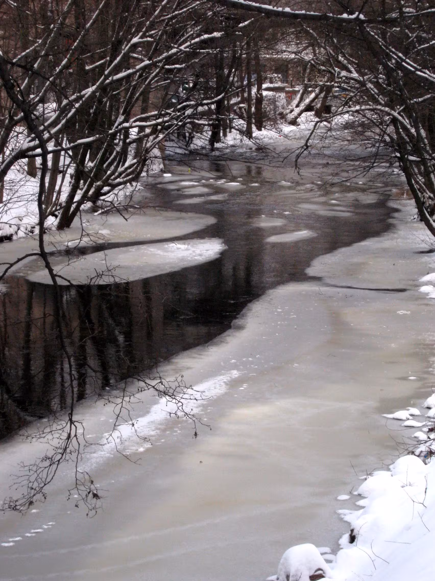 I went for a walk along the stream near my apartment. The river is starting to freeze over. I wasn’t ballsy enough to go stand on it, but it sure does make sure an idyllic view. Funky looking half-frozen effect.