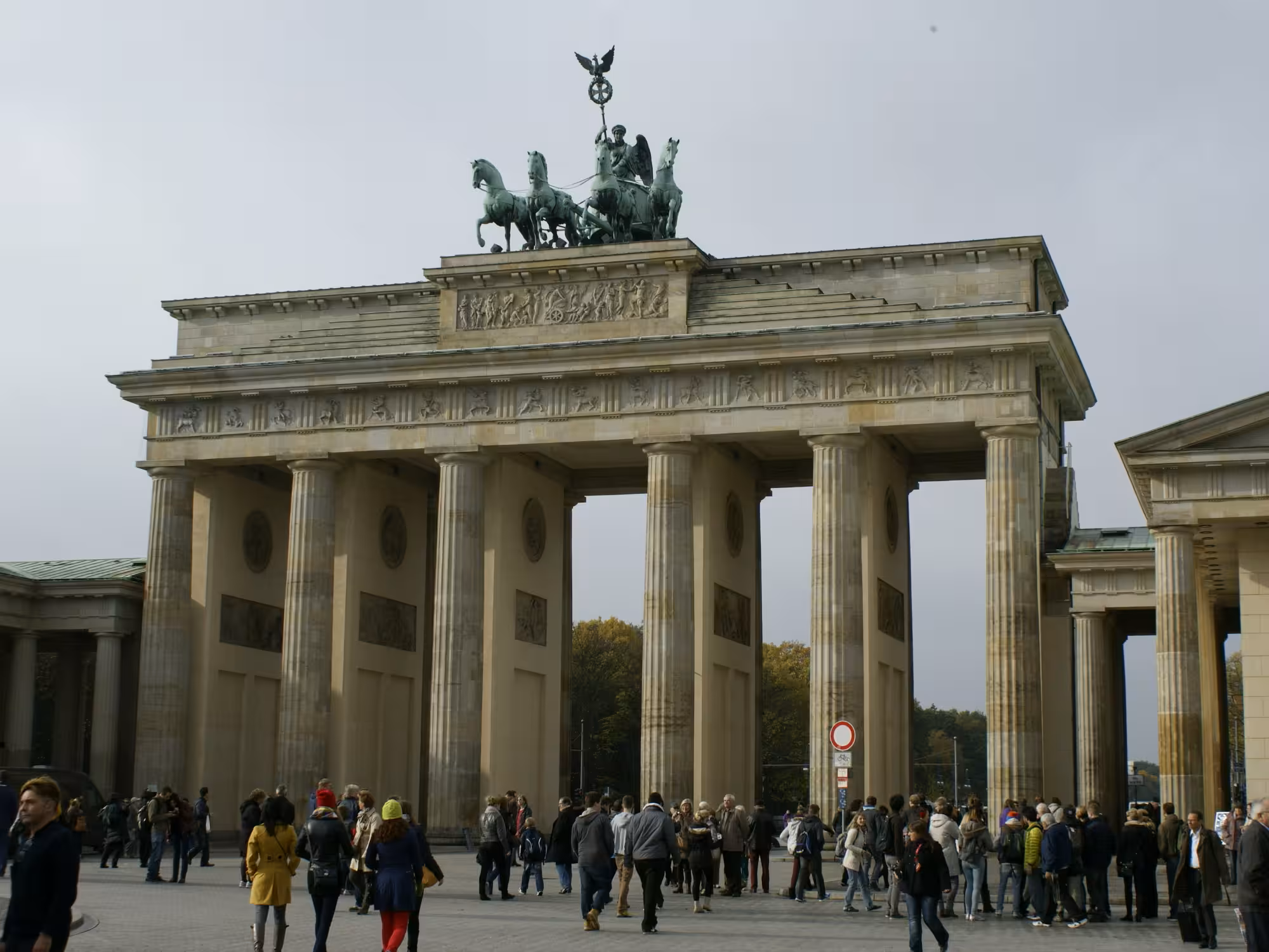 I visited the Brandenburg gate in Berlin. This is a huge concrete monolith built in 1791. It is has been used for political statements by Napoleon and Hitler and was made off-limits during much of the communist reign in East Germany to avoid it being used for political purposes. This situation changed after reunification in 1990, and now anyone can wander underneath it’s huge arches.