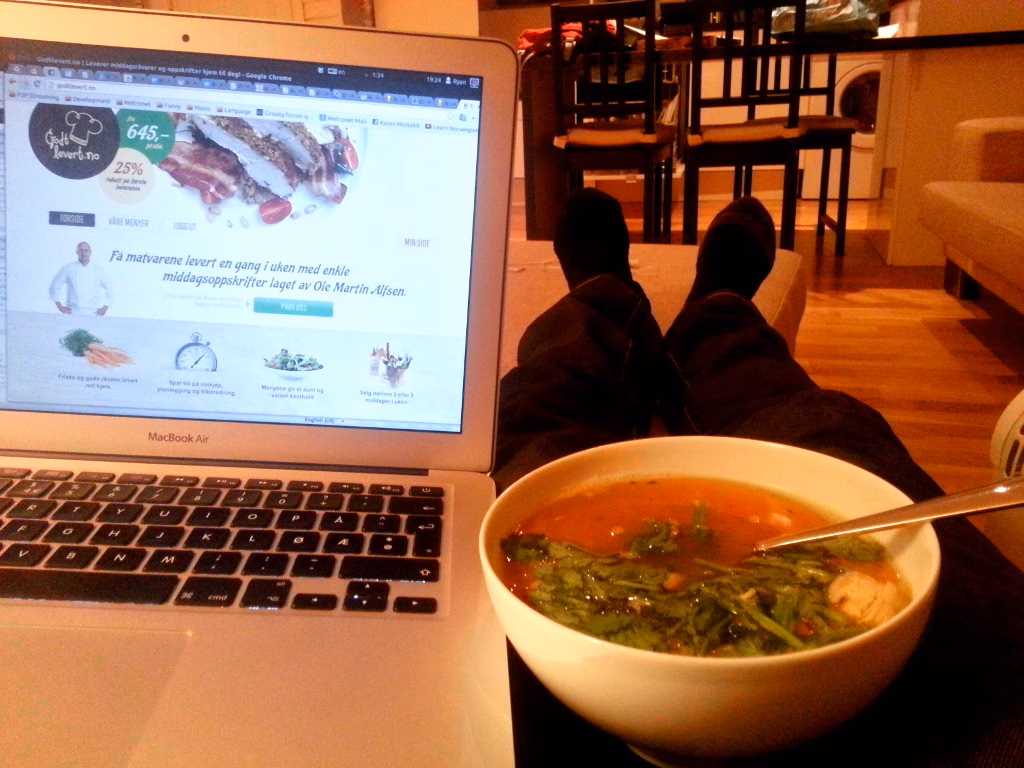 Jeg hadde kyllingsuppe fra Godtlevert.no for middag. Det smakt godt!
