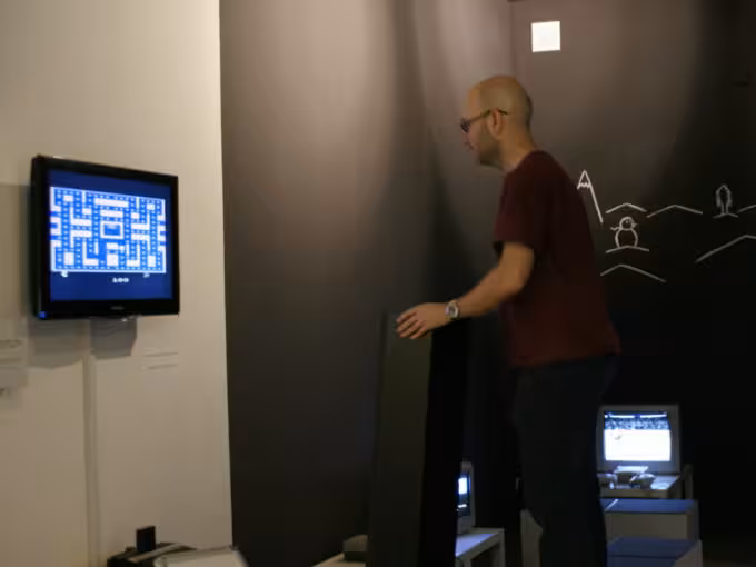 I went to the Computerspielemuseum (computer game museum) in Berlin. I got to play Pacman with a giant super sized Atari 2600 controller 🙂 Pacman on the Atari 2600 was the first console video game I ever played. In fact, I don’t even think I knew what a video game console was until my mum showed me how it worked :/