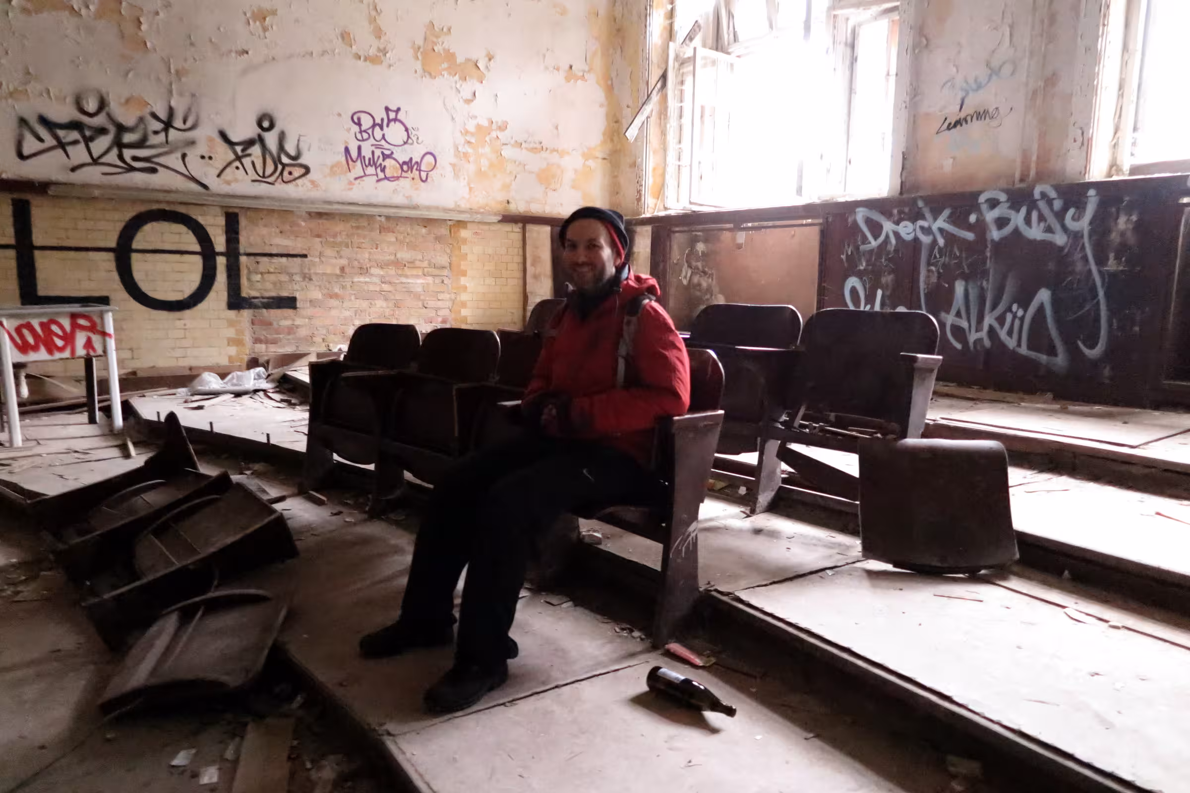 Welcome to the glamorous Beelitz-Heilstätten lecture theatre. Despite many years of abandonment, I think this place still has better insulation and seating than most of the lecture theatres I remember from my years at university.