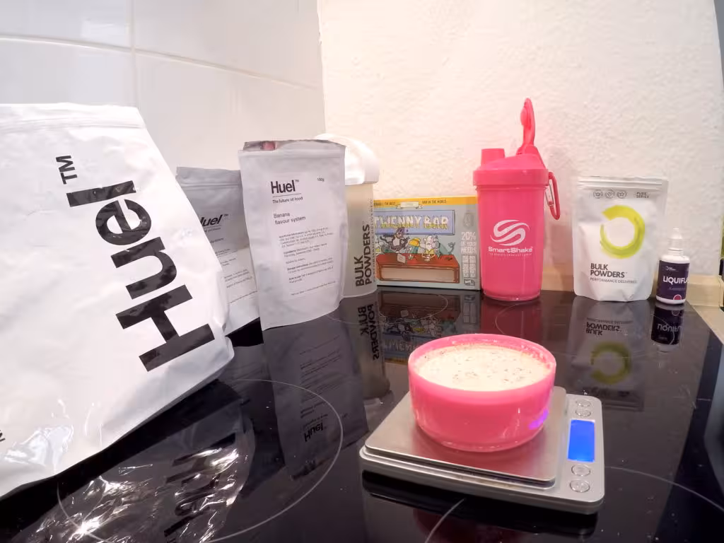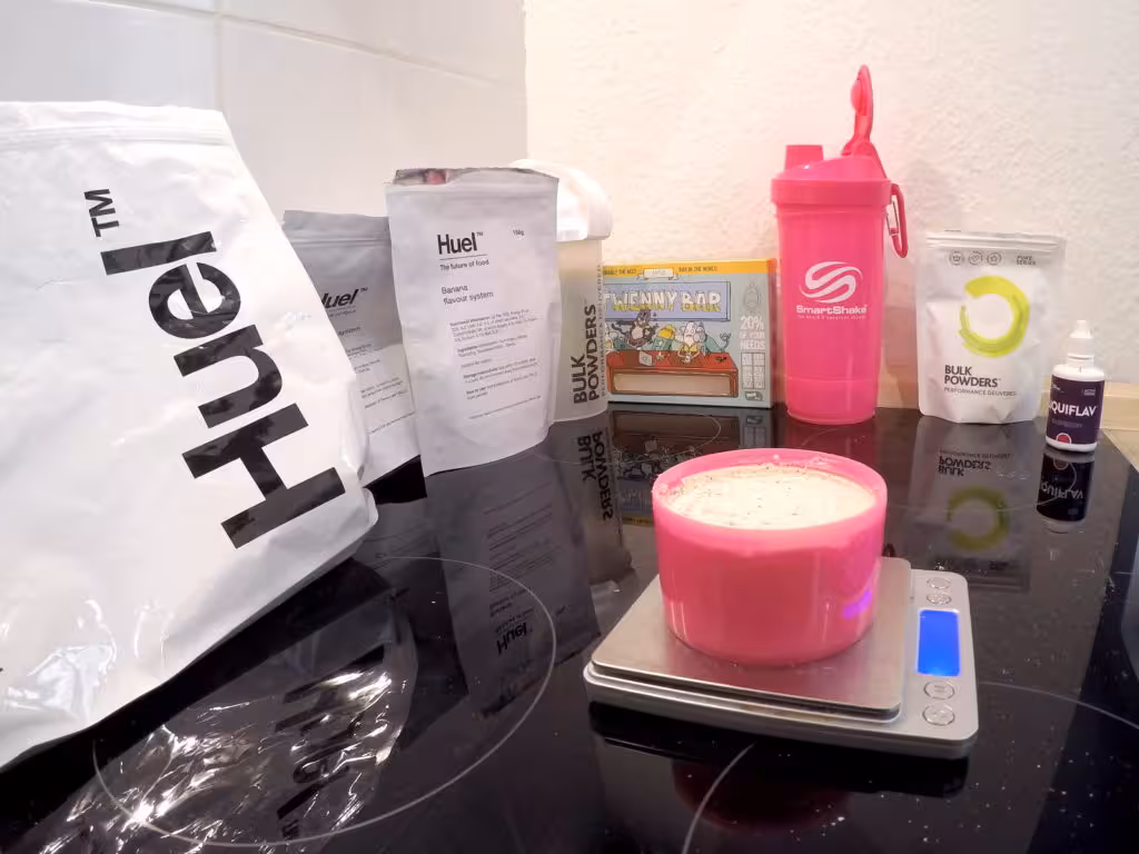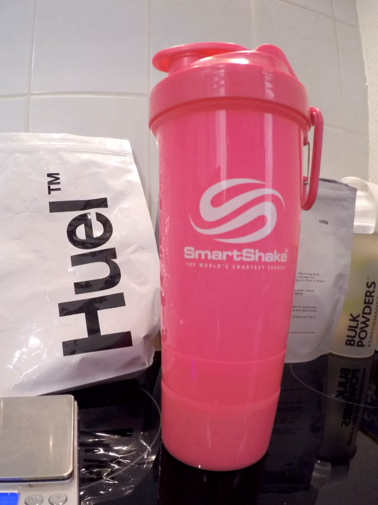 This is the best shaker bottle I’ve ever owned. It comes with two handy containers underneath the shaker, for storing your powder in. In this case, the powder was Huel. I managed to fit 90 g in the smaller container and 125 g in the larger container. It would be more like 75 g and 100 g if I didn’t pack it in tightly though.