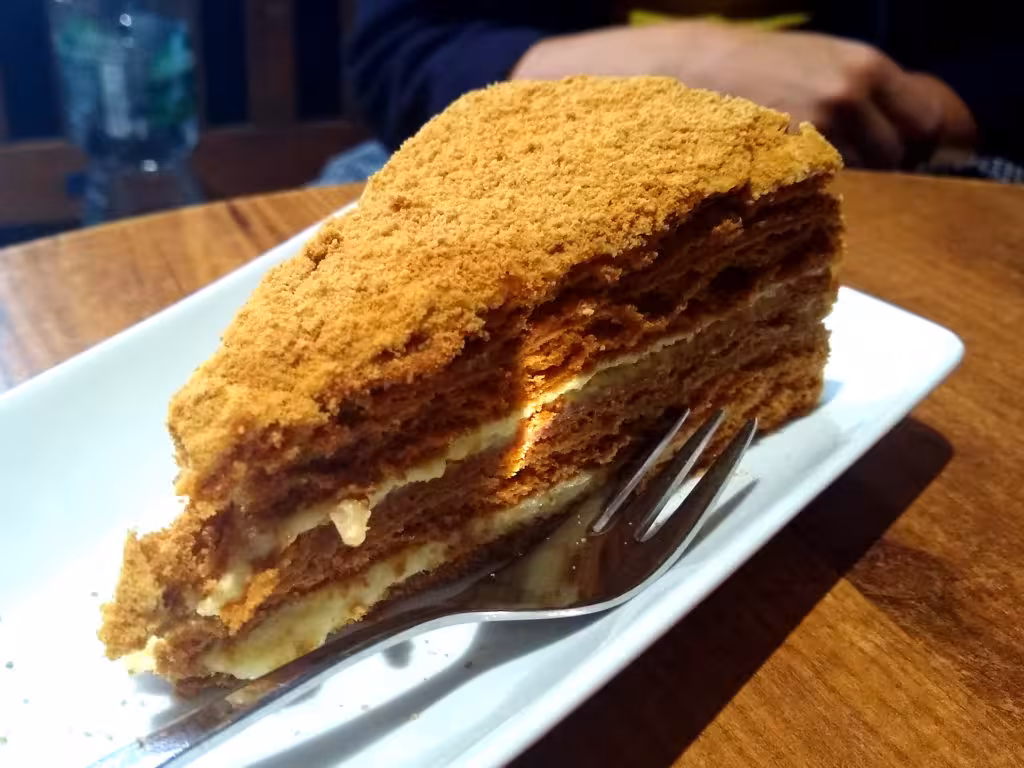 Medovik torta is a traditional Russian dessert I learned about a long time ago from a close friend from Kazakhstan. Years later, I experienced it with another person from Kazakhstan when we found it in a random cafe in Berlin 🙂