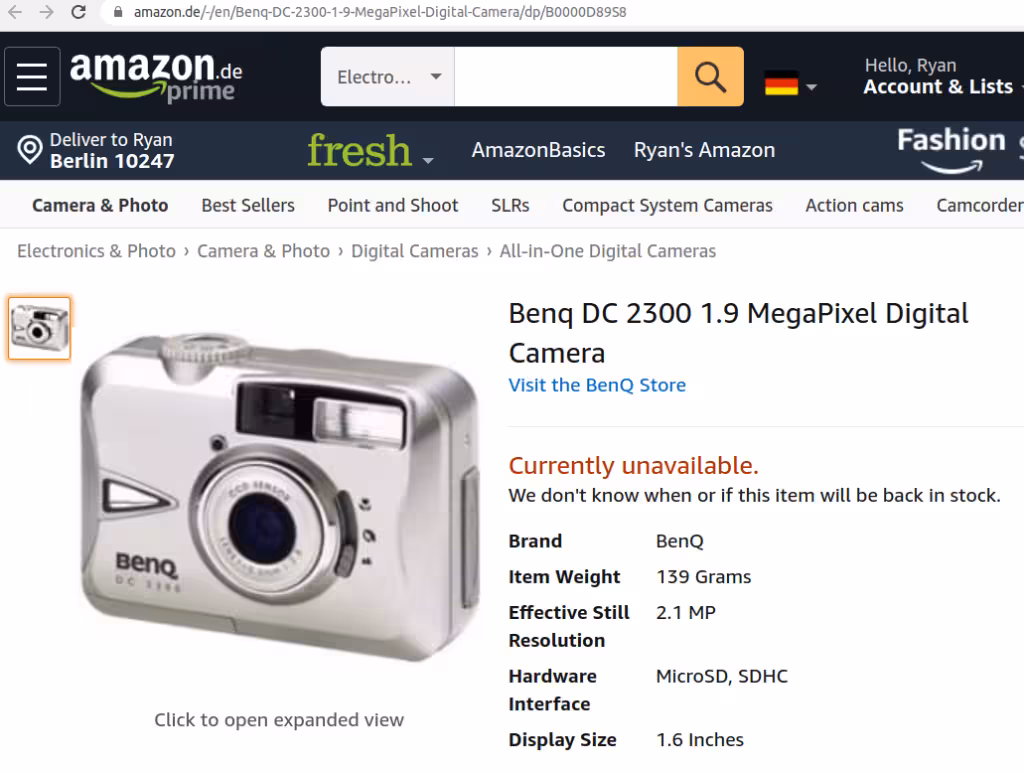 This is random. I saw the first digital camera I ever bought on amazon.de today. I bought it in 2004, so I’m kinda surprised it’s been for sale at all recently.