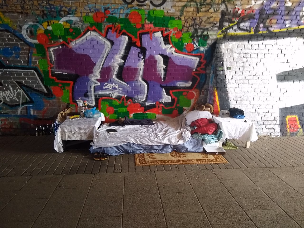 An epicaly well manicured homeless persons bedroom. I’m hoping they’ll be “home” some day when I stop by, as I want to buy them dinner. They are very organised and tidy, which I appreciate.