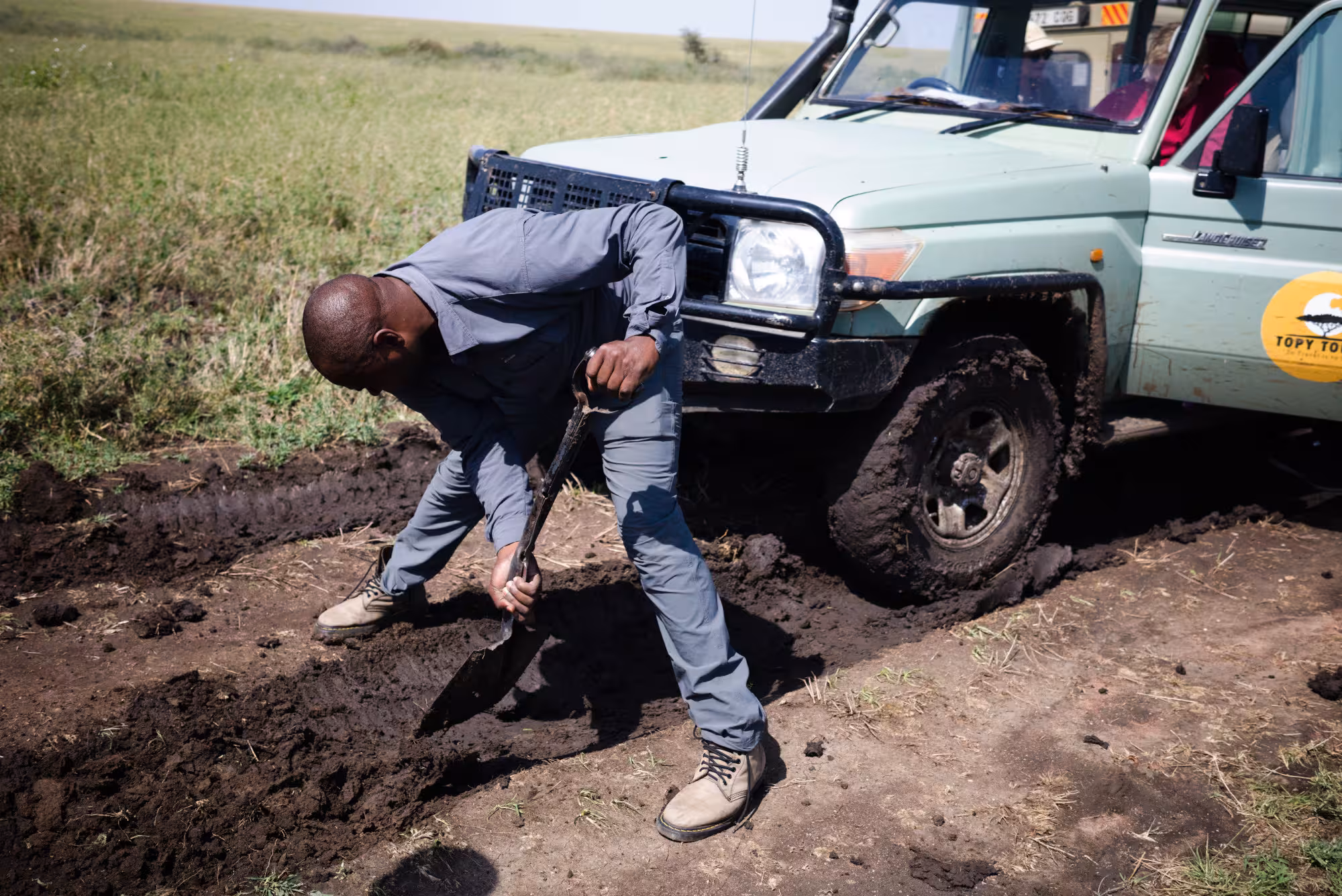 One would think that when you’ve driven past a bunch of lions, cheetahs, hyena’s and other scary animals, that one would panic when your vehicle gets stuck in the mud. But our trusty driver had no hesitation in hopping out to assist another stricken vehicle. After a while, we got bored just sitting around, so we all plowed out of the truck to stretch our legs for a bit. I remember standing there and pointing out that there could be a lion just chilling out nearby, but for some reason the lackadaisical approach of our driver spread to the rest of us, and we all just stood there calmly watching on as the 4WD experts tackled the issue at hand. We did not get eaten 🙂