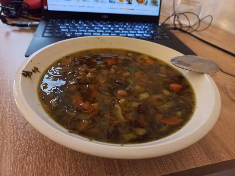 I’ve never made vegetable soup, so I just grabbed some vegetables, herbs, a dried Carolina reaper, some MSG and pepper in and put it on slow cook mode in my rice cooker along with a little water. Two hours later, and I’ve realised you definitely don’t need that much herbs in there and all of the heat from the chillis has been released from the depths of hell and into my soup. I have successfully invented one of the worst vegetable soups in history.